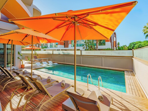 Khách sạn tại Antalya với quán cà phê và hồ bơi ngoài trời phục vụ theo mùa