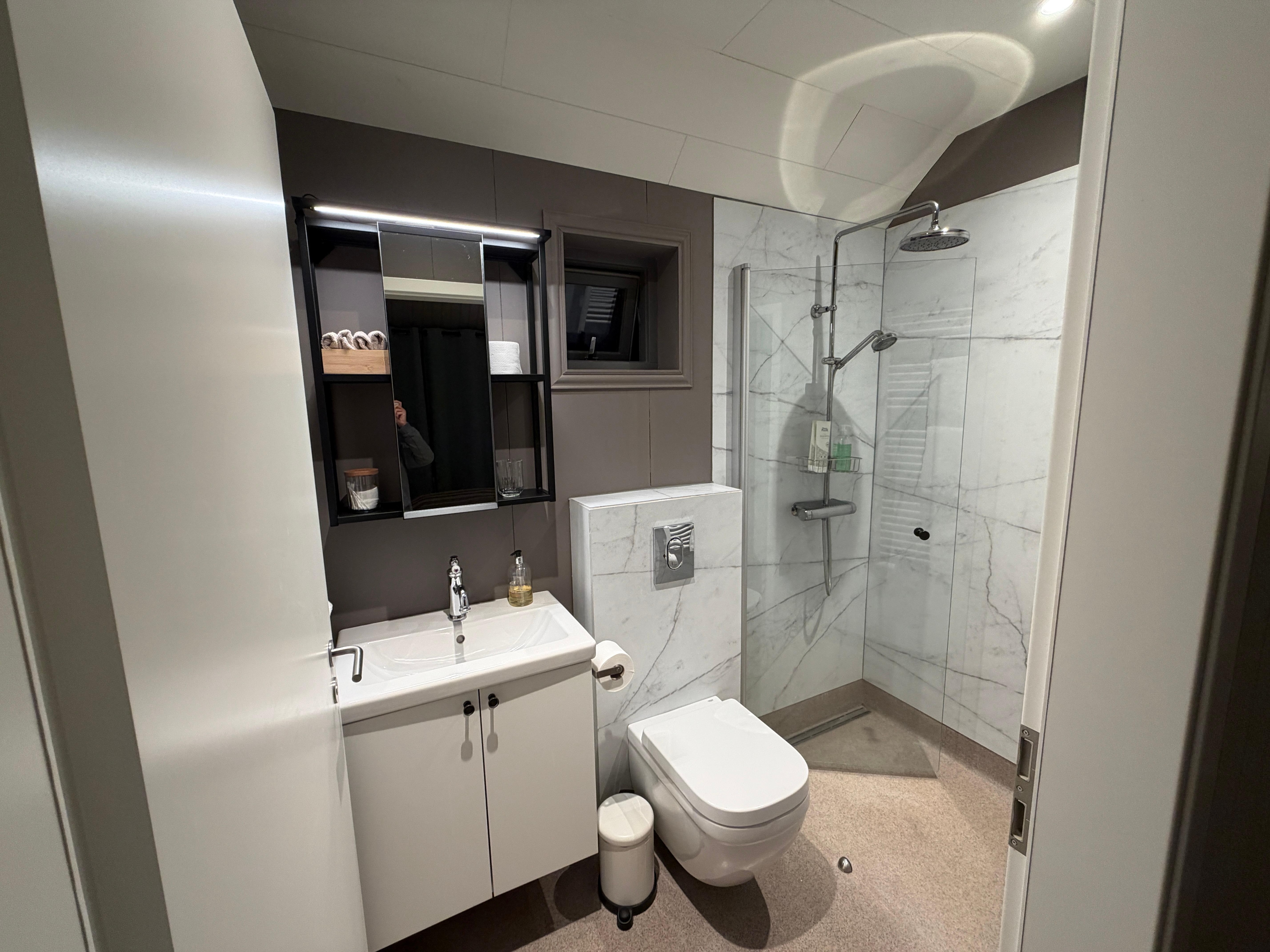 Phòng tắm có buồng tắm vòi sen với vòi sen phun mưa và máy sấy tóc. Khách có thể thoải mái lướt web với kết nối Internet không dây miễn phí (tốc độ 25+ Mbps).