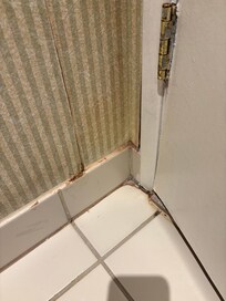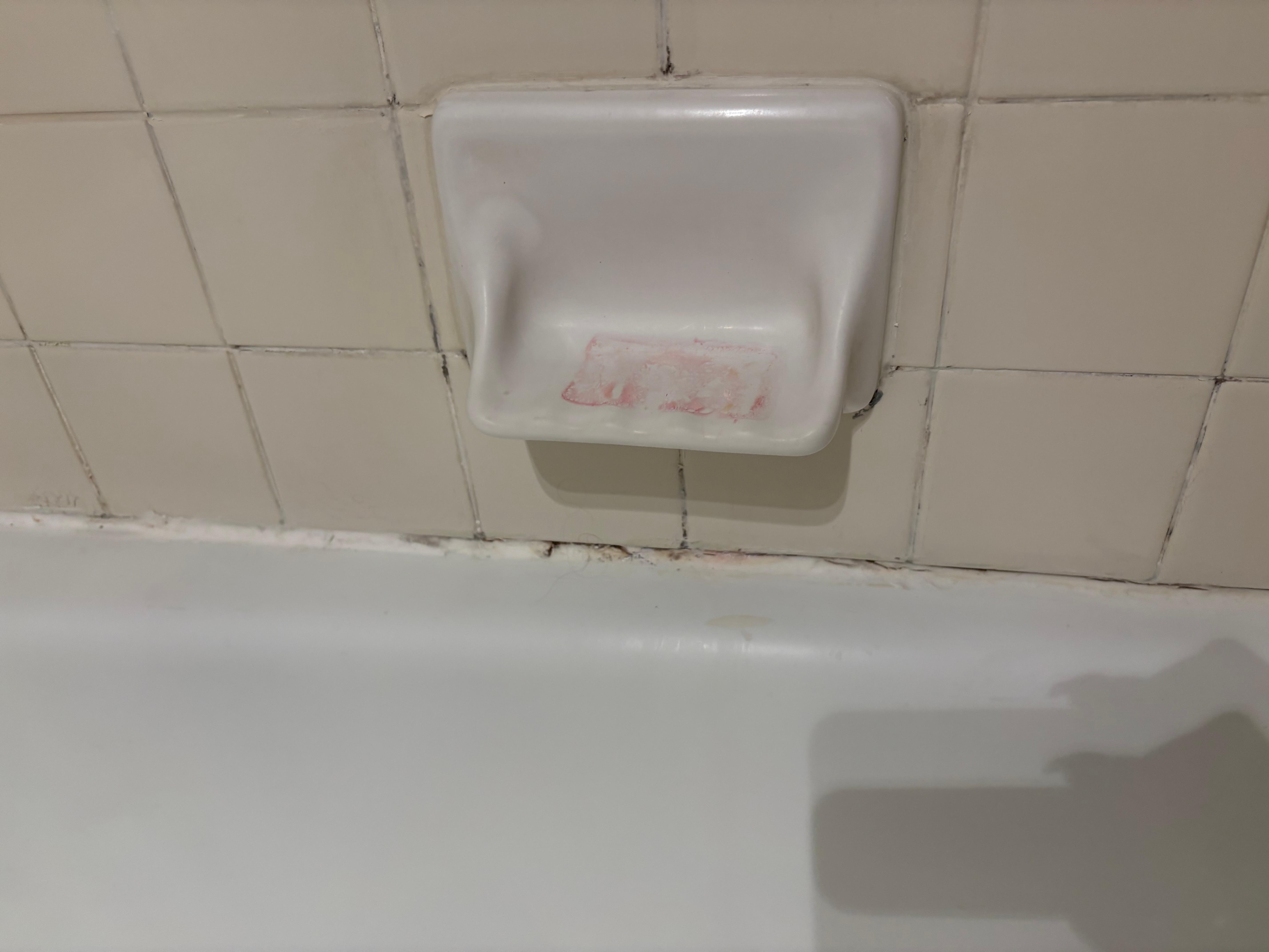 Shower/bath: mold in corners poorly covered by caulking.