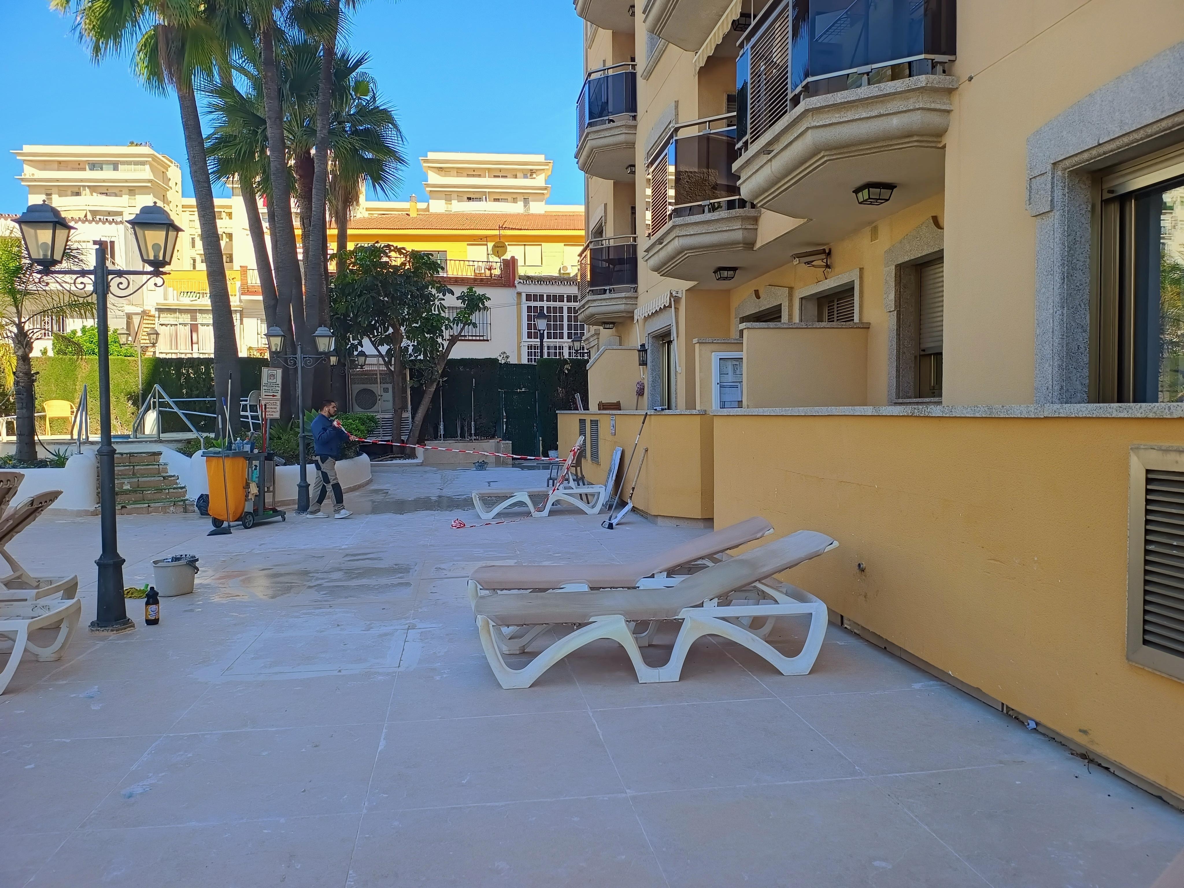 Couldn't really fault the apartment itself aside from lack of a proper oven and limited channels in English on the TV. Spacious 2 bed, 2 bathrooms and good sized balcony and washing machine. Hoever, the day after we checked in from a late arrival we were masisvely disappointed to see the pool area looking nothing like it does on the photos and renovation work being completed whilst people were sunbathing and using the pool. This included workers using noisy tile cutters, tools left on the jacuzzi steps and worst of all bits of plaster around and at the bottom of the pool. We had no prior warning of this and would not have booked this hotel had we known. The sungloungers were old and not clean as well. We opted to remain at the hotel as packing and moving hotels was too much hassle for the length of time we were there for.