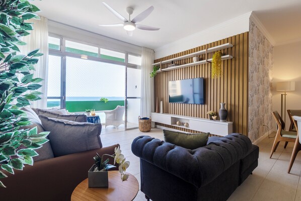 Các phòng có khu tiếp khách tách biệt và gồm bàn ăn. Smart TV 55-inch có các kênh truyền hình cáp. Căn hộ tại Guarujá này cung cấp kết nối Internet không dây miễn phí, với tốc độ 250+ Mbps (phù hợp cho 3-5 người hoặc tối đa 10 thiết bị). Phòng tắm có buồng tắm vòi sen.