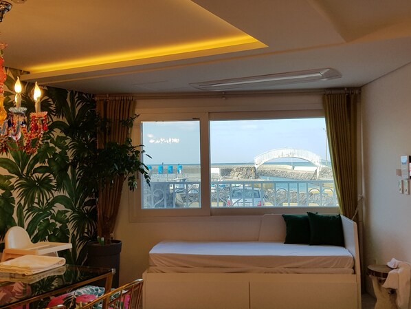 Travelers discover beachside tranquility at this retreat near Samyang Black Sand Beach, where the garden patio offers a peaceful afternoon respite