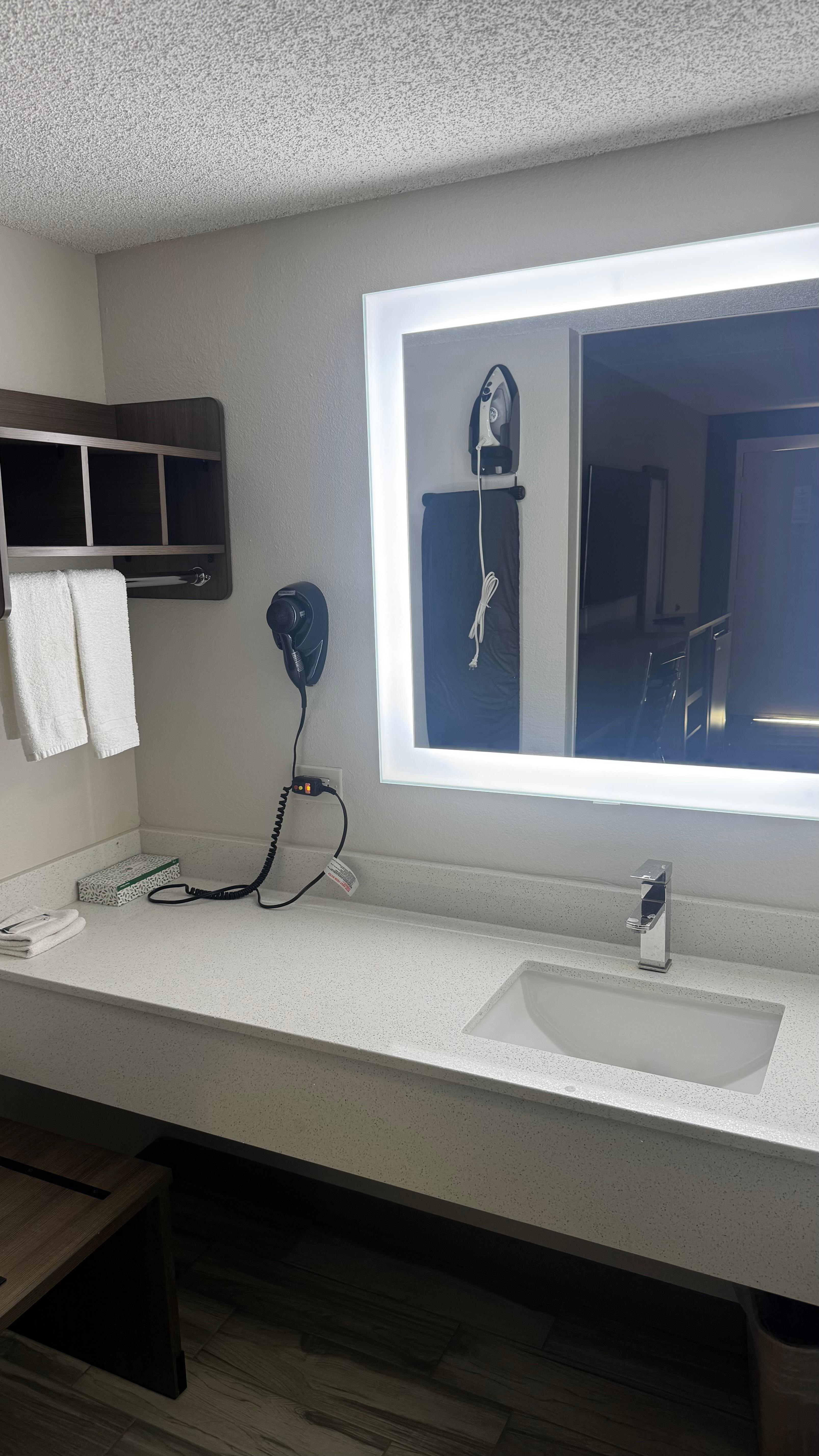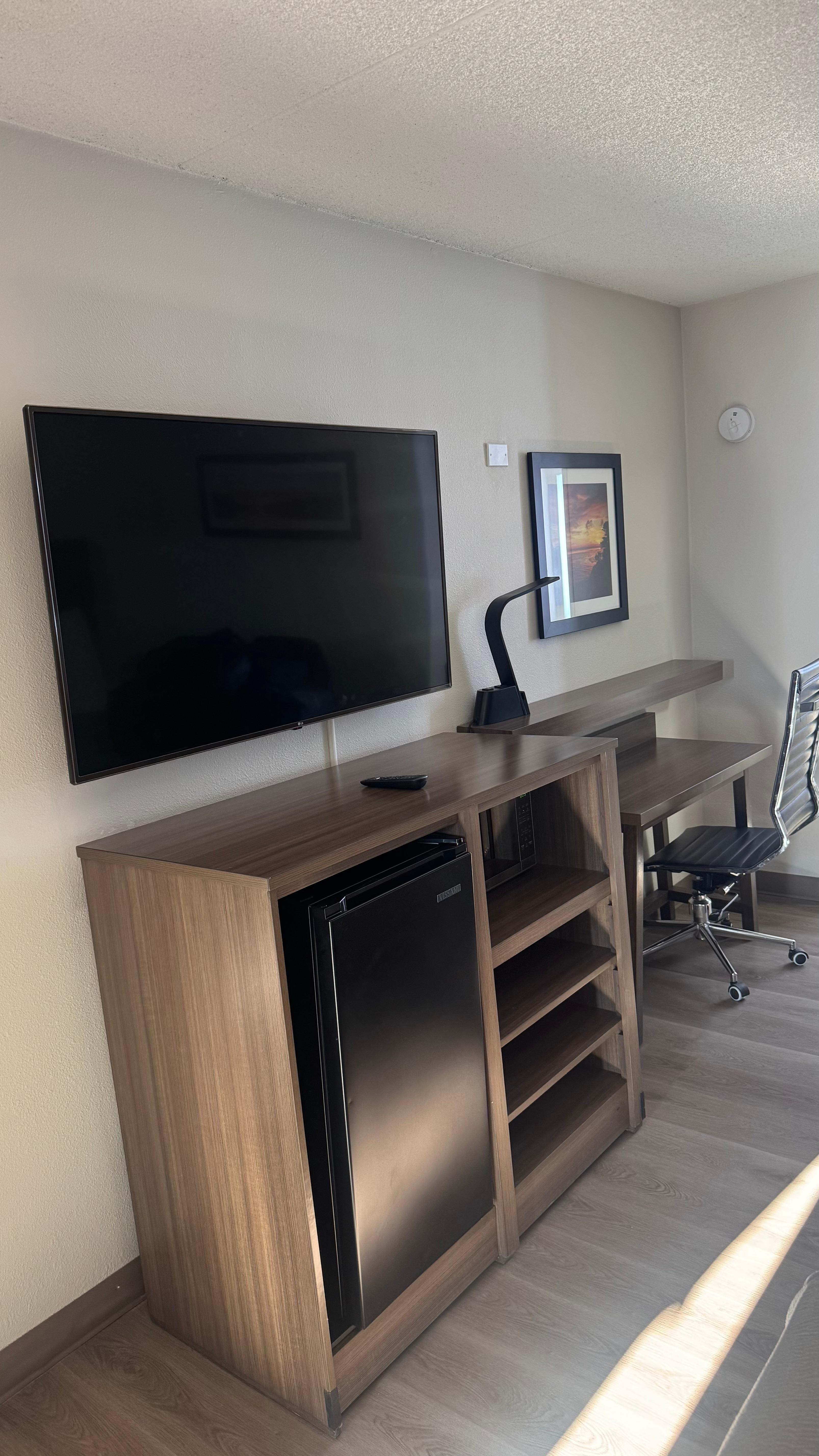 Stayed for 2 weeks. The room itself was okay. There was a minifridge with no freezer section so frozen meals are a no go. Never used the microwave as a result. There was also no dresser, so nowhere to put any clothes. They are actively renovating the place and have a lot of commotion during the day, so definitely not recommended for any night shift crews. The housekeepers also just kind of break in during the day to take out trash whether you want them to or not. The door being deadbolted is not a sign to them that you don't want to be disturbed. WiFi is incredibly slow, like 1mbps. The insulation is also non-existant, so the heater kept turning on literally every 5 minutes.