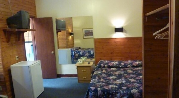 It's a bed and a bathroom and not much else