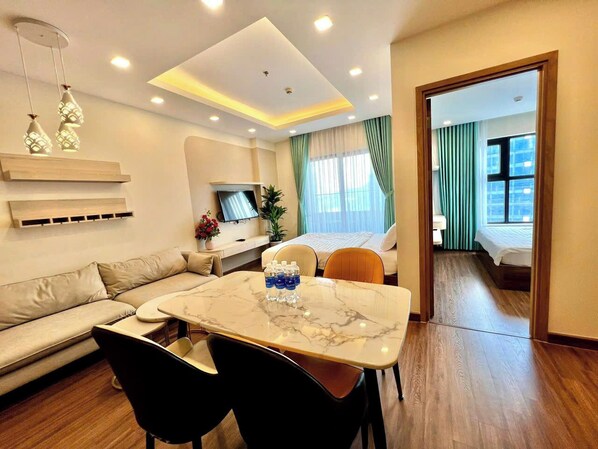 Phòng tắm có bồn tắm hoặc buồng tắm vòi sen và đồ dùng nhà tắm miễn phí. Khách sạn căn hộ tại Quy Nhơn này cung cấp kết nối Internet không dây miễn phí, với tốc độ 250+ Mbps (phù hợp cho 3-5 người hoặc tối đa 10 thiết bị). Ngoài ra, các phòng còn có bàn ủi/dụng cụ ủi quần áo và màn/rèm cản sáng. Có dịch vụ dọn phòng hàng ngày.