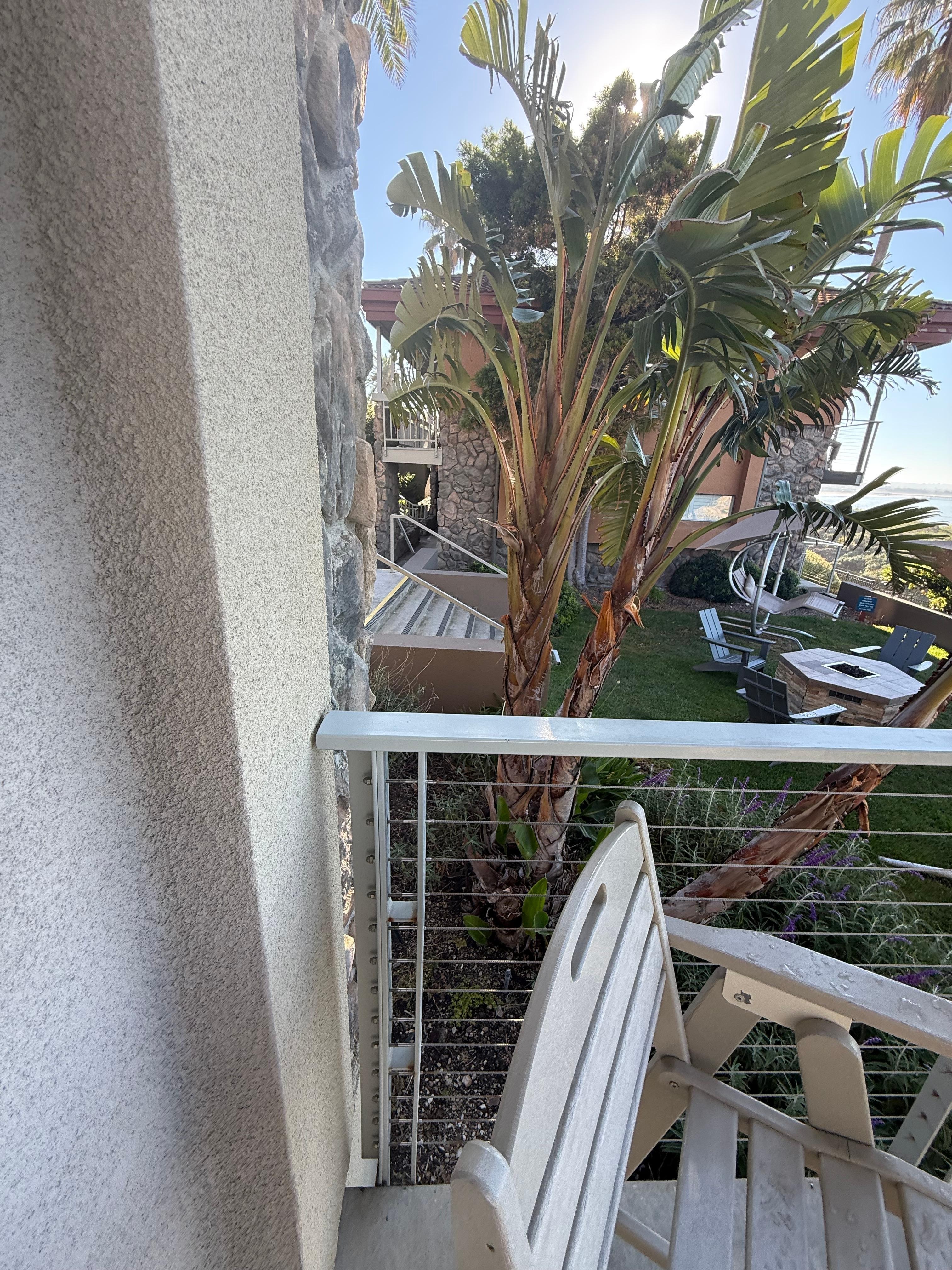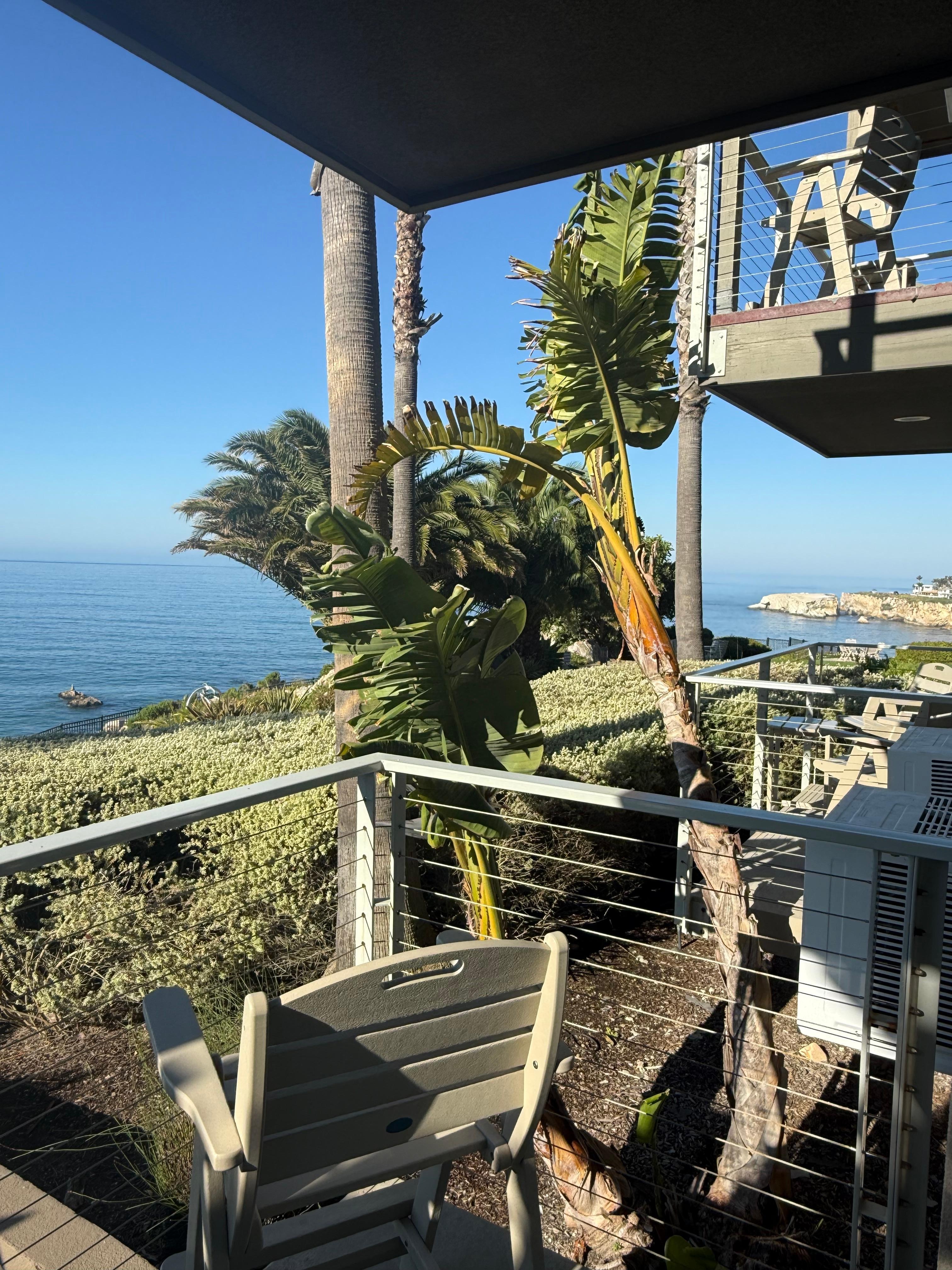 The ocean was visible from our room. We had a comfortable balcony to sit and watch the sunset. The grounds on the property were beautiful with access by stairs down to the cove. Just lovely.