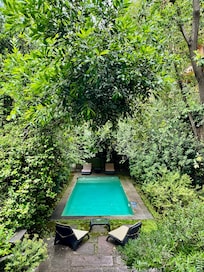 An oasis in city centre Santiago, this charming restored mansion features a beautiful veranda and cosy atmosphere. Enjoy the serene pool and garden, all within walking distance to vibrant nightlife, restaurants, and major attractions.