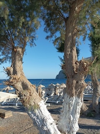- Kamari Beach - 2 min walk - 0.2 km