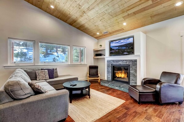 Nhà, nhiều giường, ban công, quang cảnh núi (Amachen Cabin) | Khu phòng khách | TV màn hình phẳng 42-inch có truyền hình kỹ thuật số, lò sưởi
