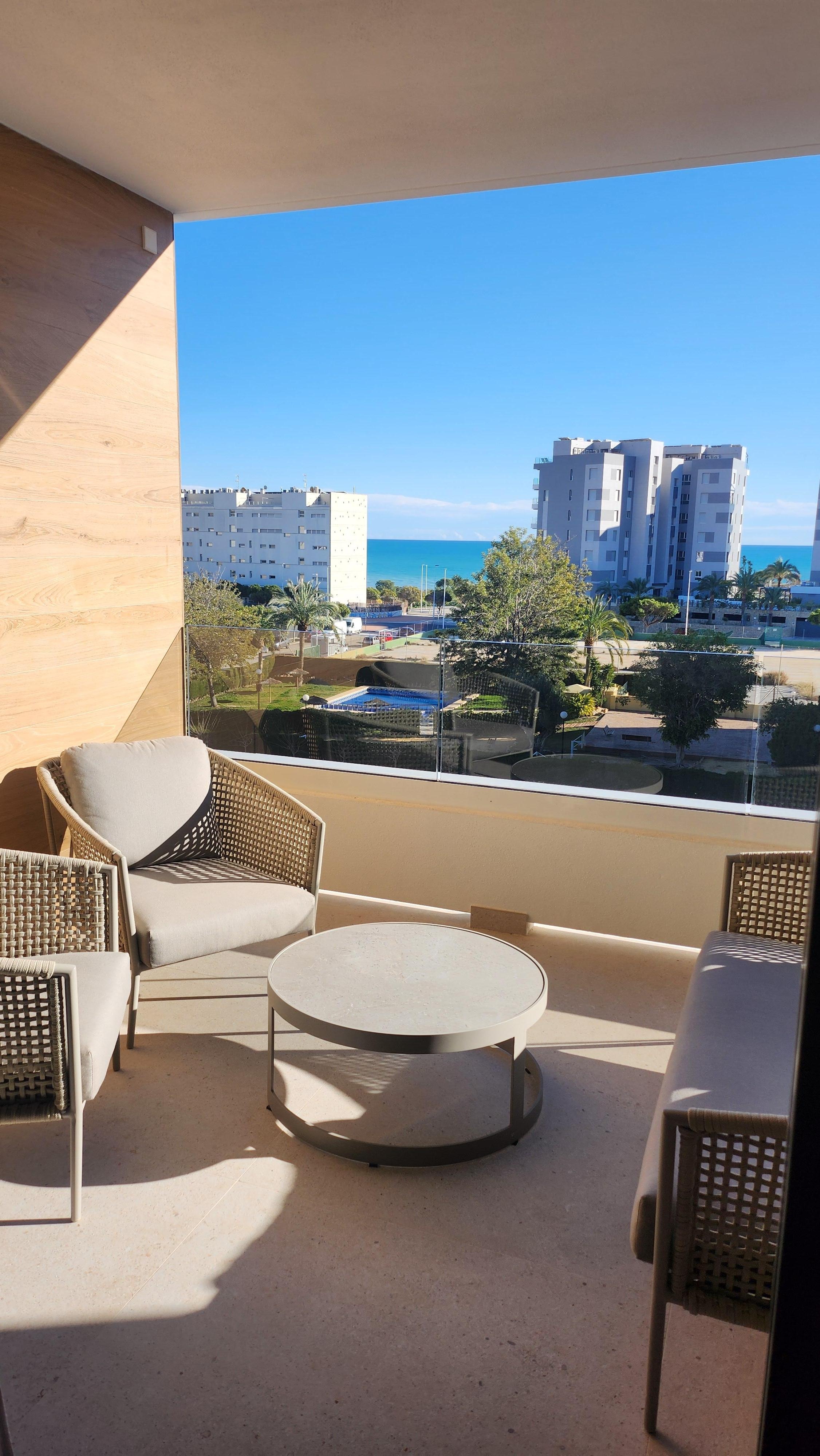 Khách sạn căn hộ tại Villajoyosa với bếp và ban công có bàn ghế