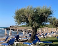 Grecotel Meli Palace - All Inclusive offers a peaceful seaside getaway. Guests can dine at two on-site restaurants for all meals or book beach massages and aromatherapy at the Elixir spa. The private beach is perfect for sunbathing, volleyball, or swimming in the two pools.