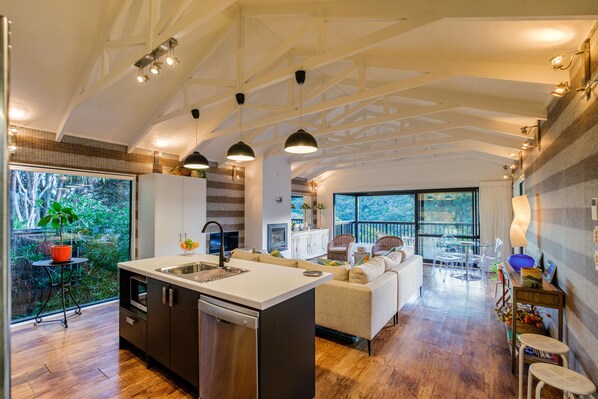 Premium House | Private kitchen | Full-sized fridge, microwave, oven, stovetop - The Pavilion Omiha  (Waiheke Island)