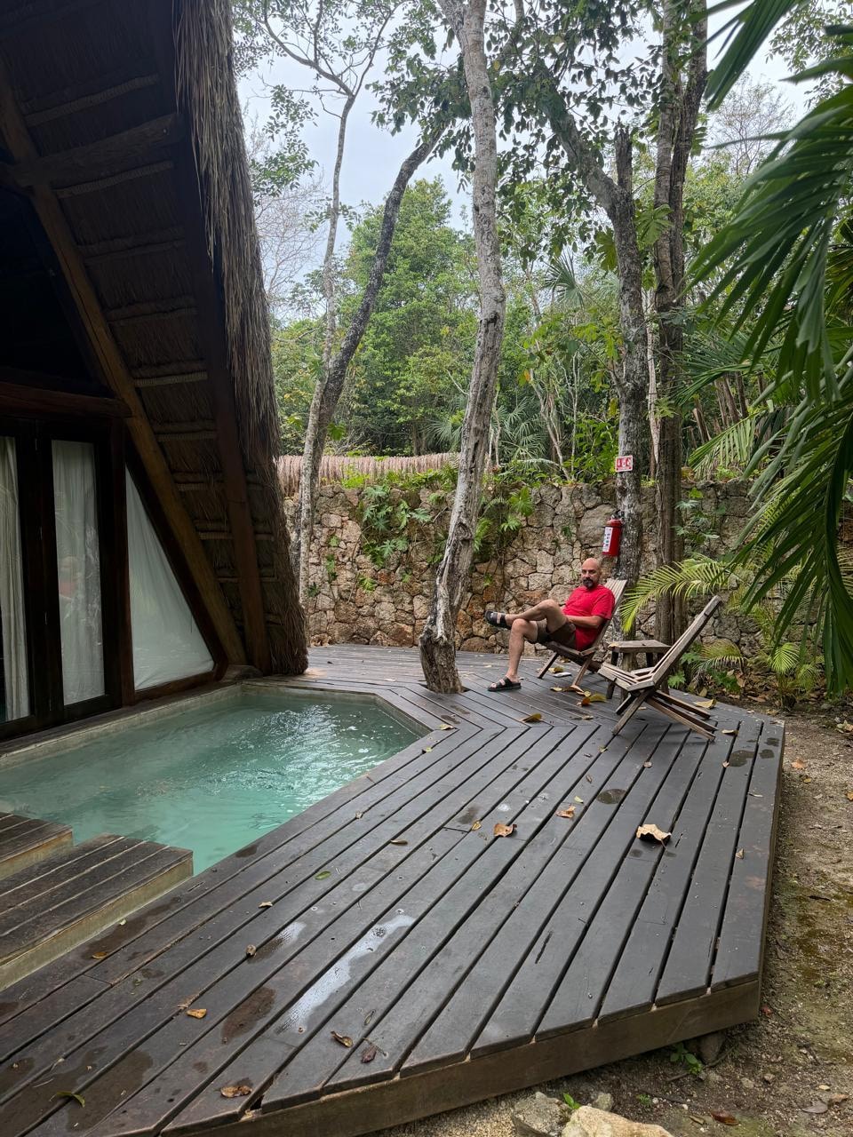 One of the coolest places we’ve ever stayed. Amazing jungle setting, super cool rooms with amazing decor, romantic lighting, thatch walls, outdoor shower, awesome plunge pool at the front door. We loved the cats everywhere, the open air reception lounge, awesome, friendly staff and beautiful lagoon. This place was like a super cool, semi fancy Gilligans island. If you like boring, beige, generic hotel chains, don’t come here.