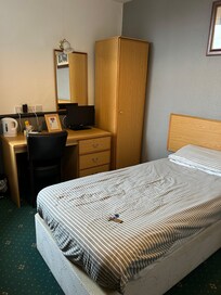 I stayed in a single room on the second floor of this pub. The room was very tired/shabby and in desperate need of a deep clean. Old carpet fraying around the edges, dirty splashes up the wall, etc. Sloping, creaking floor.