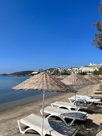 At Gümbet Cove Hotel in Bodrum City Center, guests enjoy a private beach complete with sun loungers and beach umbrellas. The property provides in-room WiFi and dry cleaning services, plus a dedicated off-leash area for pets.