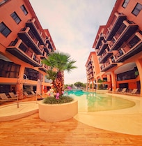 Jurerê Beach Village is on the white sands of Jurere. Guests can enjoy outdoor and children's pools, relax in the sauna, or book massages and spa services. The Fajã restaurant offers poolside dining, and complimentary supervised childcare gives parents time to themselves.