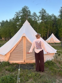 The property has beautiful views. There was miscommunication with the address listed being incorrect, and due to being in areas without cell service, we didn't receive the new address that was sent one day before. I also disagree with this being labeled glamping. The bed in the tent was amazing, but the "shared bathroom" was port a john style shower/toilet combo. And towels were available to purchase for $10 each. Just set proper expectations for your guests.