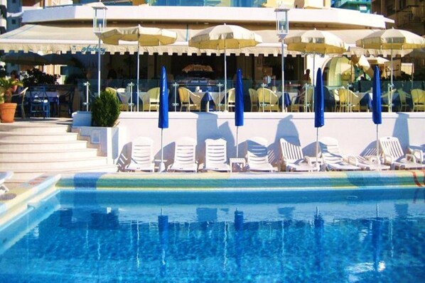A refreshing Jesolo retreat where guests can swim in the outdoor pool, savor meals at the on-site restaurant, and enjoy beautiful views