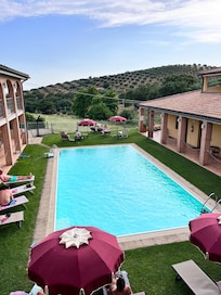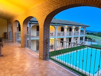 Escape to Hotel Le Querciolaie dei Ricci, where the rolling hills meet modern comfort. Savor a continental breakfast, unwind by the poolside bar or explore the attached winery and garden, all while staying connected with free in-room WiFi and enjoying perks like tour assistance and luggage storage.