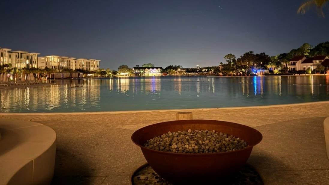 4 bed 4 bath Flat with balcony, views of Orlando's newest beach paradise + nightly Fireworks view