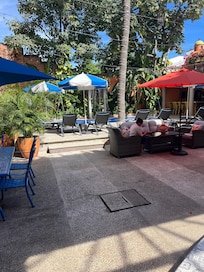Yes, this property has an outdoor pool. Pool access is from 9:00 AM to 6:00 PM.
