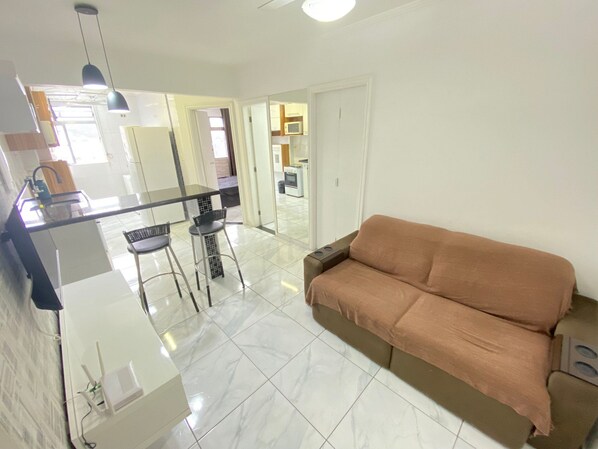 Beach apartment in São Vicente with free parking