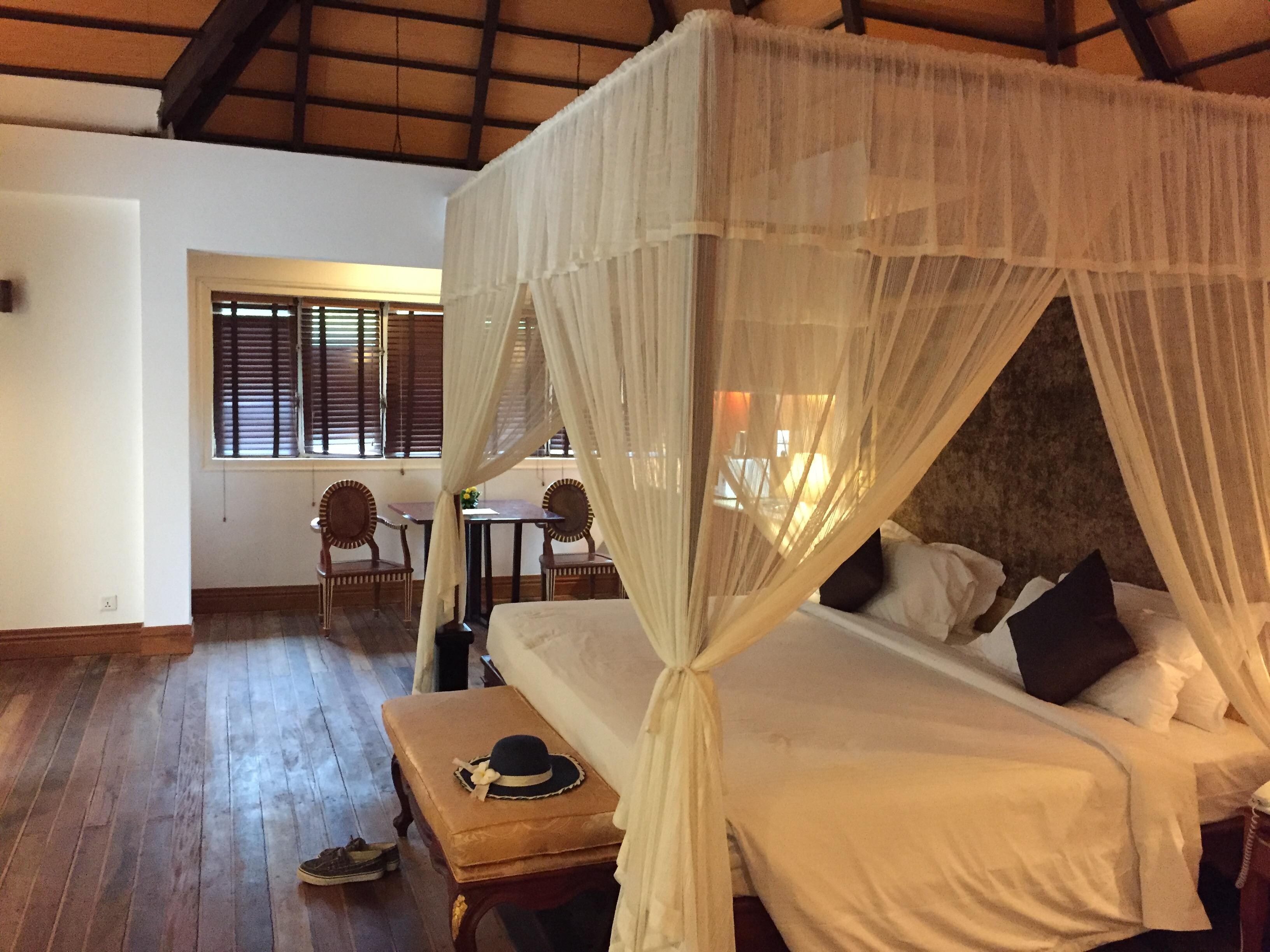 We spent 3 nights here in the Moka Mohori chalets, which tend to have the best views of the ocean and include a Jacuzzi on the balcony. Our chalet (#14) had great views over the private beach and particularly good sunset views. However, we note that not all of the chalets at this price point have equivalent views – some simply look out over the lagoon. The chalet is quite large. The chalets are a long walk to the main building for the pool and breakfast. We didn’t mind, but others might want to keep that in mind. The private beach is lovely and we never had any trouble finding a shady lounge chair. We also enjoyed spending time poolside, although more shade would be welcome. The breakfast buffet is extensive, with western and Asian options, and the food was quite good. Service is spotty and it can be difficult to get cups of coffee refilled, etc. We ate dinners at the Lemongrass restaurant, which has great ocean views. There were other restaurants on the resort map, but none were open – very mysterious. The food was fine, not great, and more expensive than many food options in Cambodia. The service was quite attentive. Facilities could use an update – it seems that there have been no renovations since the resort opened. Everything was perfectly fine, but showing wear and tear. We had a great time relaxing here for 3 days, but would note that it does not meet true 5 star standards.