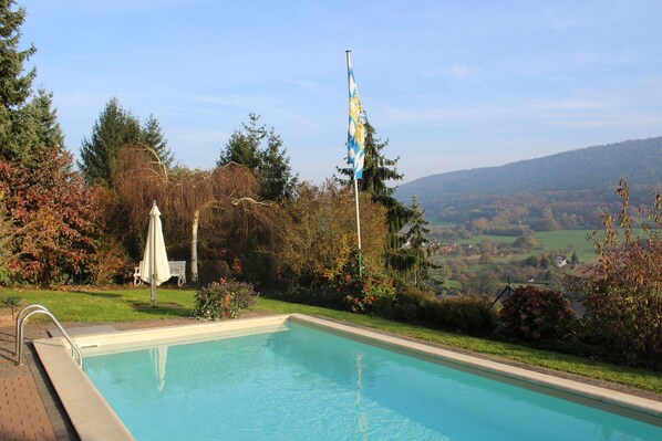 Pension Haus Erika, set in beautiful gardens, offers a quiet escape. Guests enjoy a continental breakfast, relax on the sunny terrace, or swim in the outdoor pool. The multilingual staff is praised for their helpfulness, and free WiFi is available in all rooms.